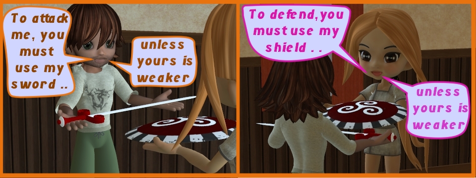 We may assume that under voluntary law, Abuser cannot claim a right to abuse anyone including his own children (such a law clearly violates the non-aggression principle and equality of persons), and may be held fully liable under claims brought on behalf of his freed children. The issue is limited to whether Abuser may exploit the impossibility of reciprocity problem to deprive Defender of any affirmative defense based on defense of others for defending Abuser’s own children. Suppose this result is permitted, and the tables are turned: Abuser attacks to defend Defender’s children (assuming Defender has become an abuser). Shall voluntary law permit Abuser to gain the benefit of Defender’s affirmative defense?